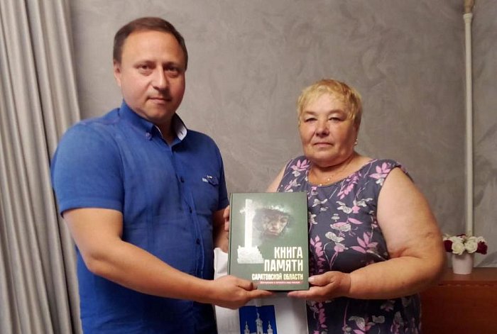 Глава Елшанского МО Акчурина Р. А. передала Книгу памяти Брагиной Наталье Викто-ровне, жительнице с. Славянка, жене Брагина Алексея Алексеевича, Фарзалиеву Султану Музаффер Оглы, жителю с Андреевка, отцу Фарзалиева Асифа Султановича погибших при выполнении боевого задания в СВО.