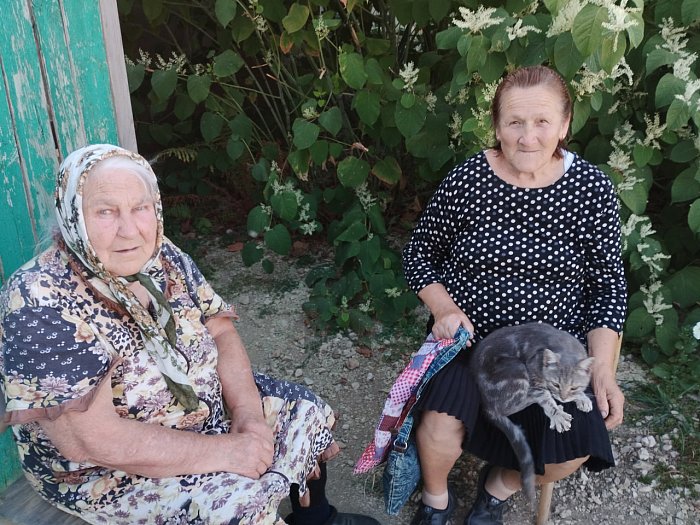 Накануне этого праздника я сфотографировала двух женщин. Еще стояло «сентябрьское лето» и можно было посидеть у дома, понаслаждаться теплом, полюбоваться белым цветением кустарника спирея. Валентину Тимофеевну Сатарову часто в хорошую погоду можно увидеть. А Валентина Ивановна Кашетова шла из местного отделения почты. Вот встретились две сельские женщины, у которых судьбы немного схожи, возраст почти одинаков, немного работали в одном учреждении и одно время жили почти в соседях в селе Воскресенское – в районе Сулака.