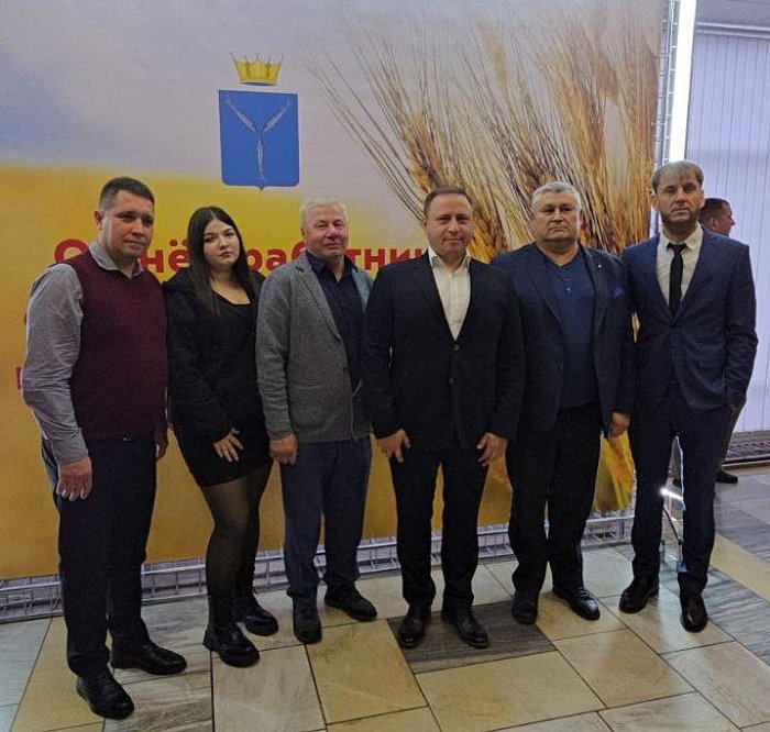 Здесь были вручены благодарности и Почетные грамоты разных уровней лучшим труженикам АПК и передовых хозяйств области, в том числе победителям и призерам проходившей в Москве выставки «Золотая осень 2025 года».