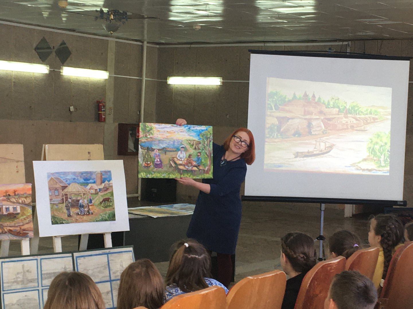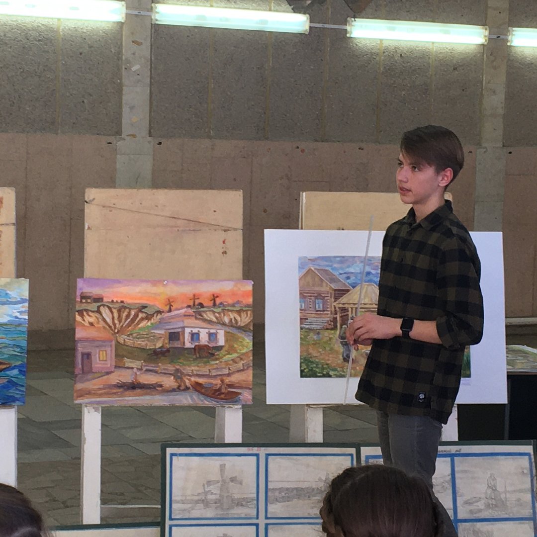 Светлана Анатольевна показала работы Николая Ивановича, на которых изображена практически вся история нашего села, дети с большим интересом слушали рассказ, отвечали на заданные вопросы ведущего. А учащиеся художественного отделения Детской школы искусств демонстрировали свои работы с графических зарисовок Николая Ивановича Потина.