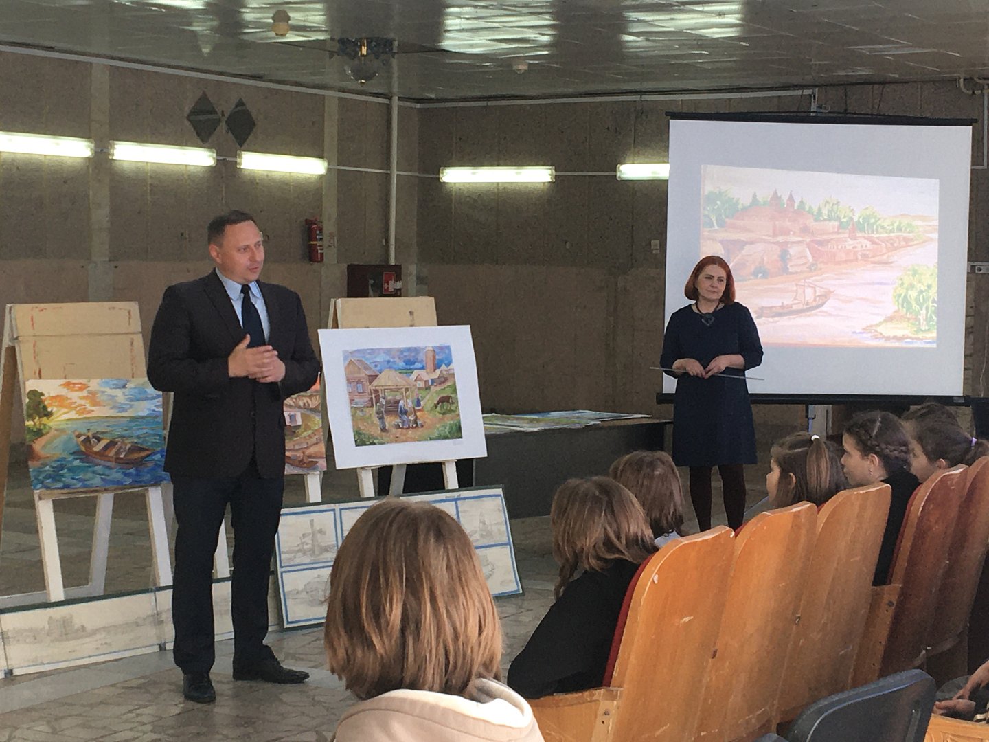 Вначале мероприятия глава ВМР Д.В.Павлов познакомил ребят и рассказал биографию этого замечательного человека, художника Н.И.Потина.