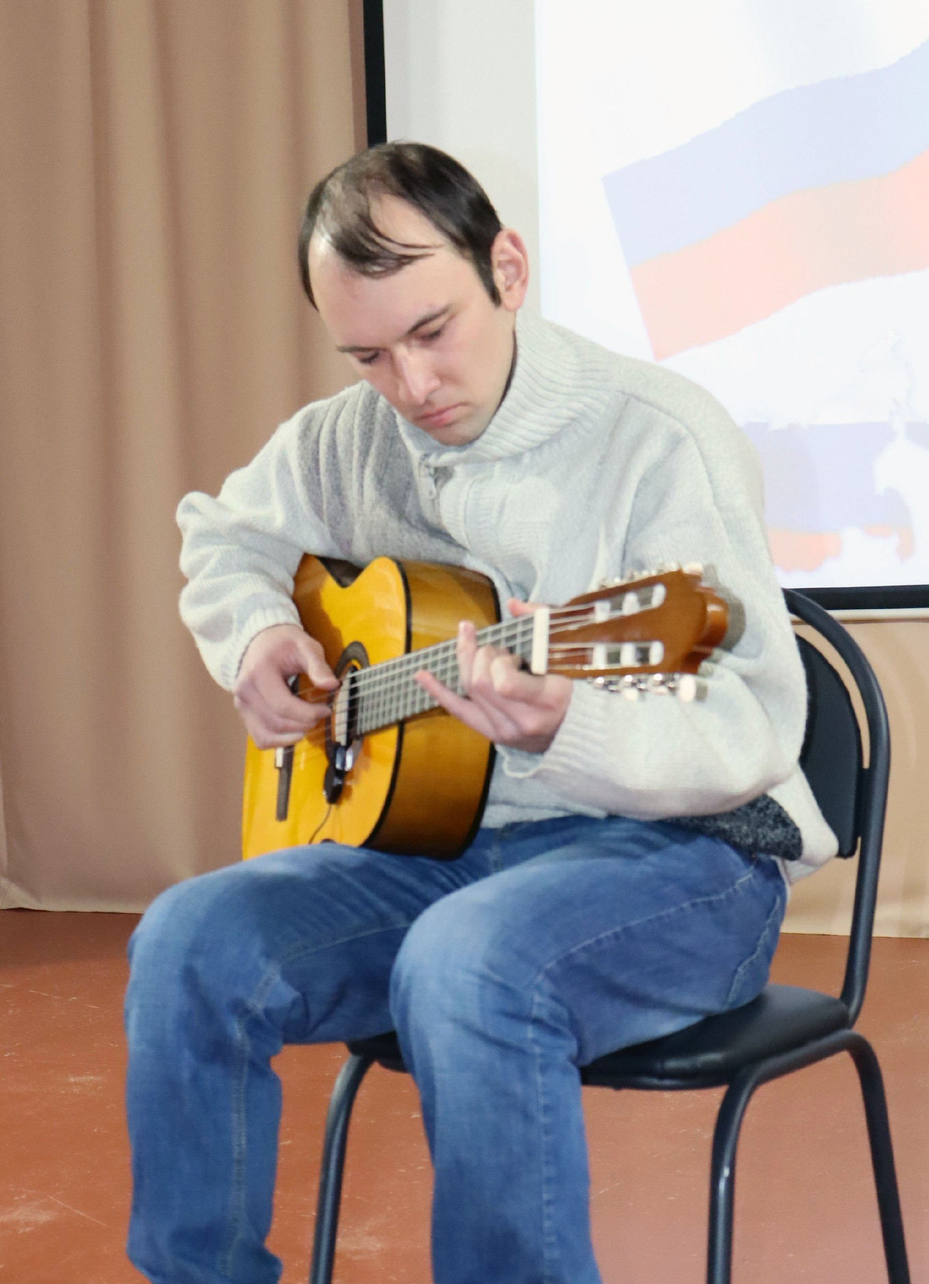 Праздничное мероприятие началось с приветственного слова ведущей Никитиной А.В. Государственный гимн Российской Федерации был исполнен преподавателем народных инструментов Абрамовым А.А., что явилось символичным обращением к историческому наследию нашей страны.