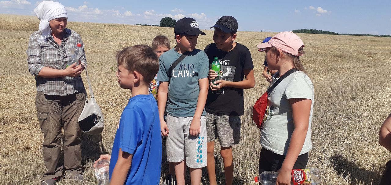 В завершении экскурсии ребята угостили всех водителей и комбайнёров ключевой водой, заранее набранной в местном роднике села Булгаковка.