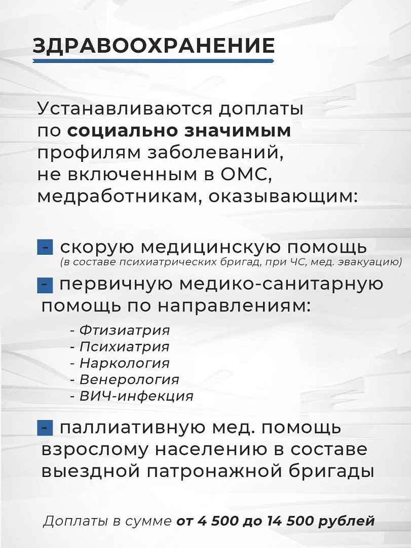 С октября этого года увеличим зарплаты работников региональных учреждений социальной сферы, спорта и культуры на 9,6%. Наряду с этим у ряда работников здравоохранения и образования появятся доплаты. Повышения затронут более 50 тысяч человек. В общей сложности на повышение заработных плат с 1 октября и до конца года потребуется 800 миллионов рублей. На 2024 год сумма превышает 3 миллиарда рублей. Средства значительные, все эти шаги направлены на то, чтобы сохранить уже действующих и привлечь новых специалистов. В ближайшее время соответствующие документы будут подписаны и внесены на рассмотрение депутатов областной думы.