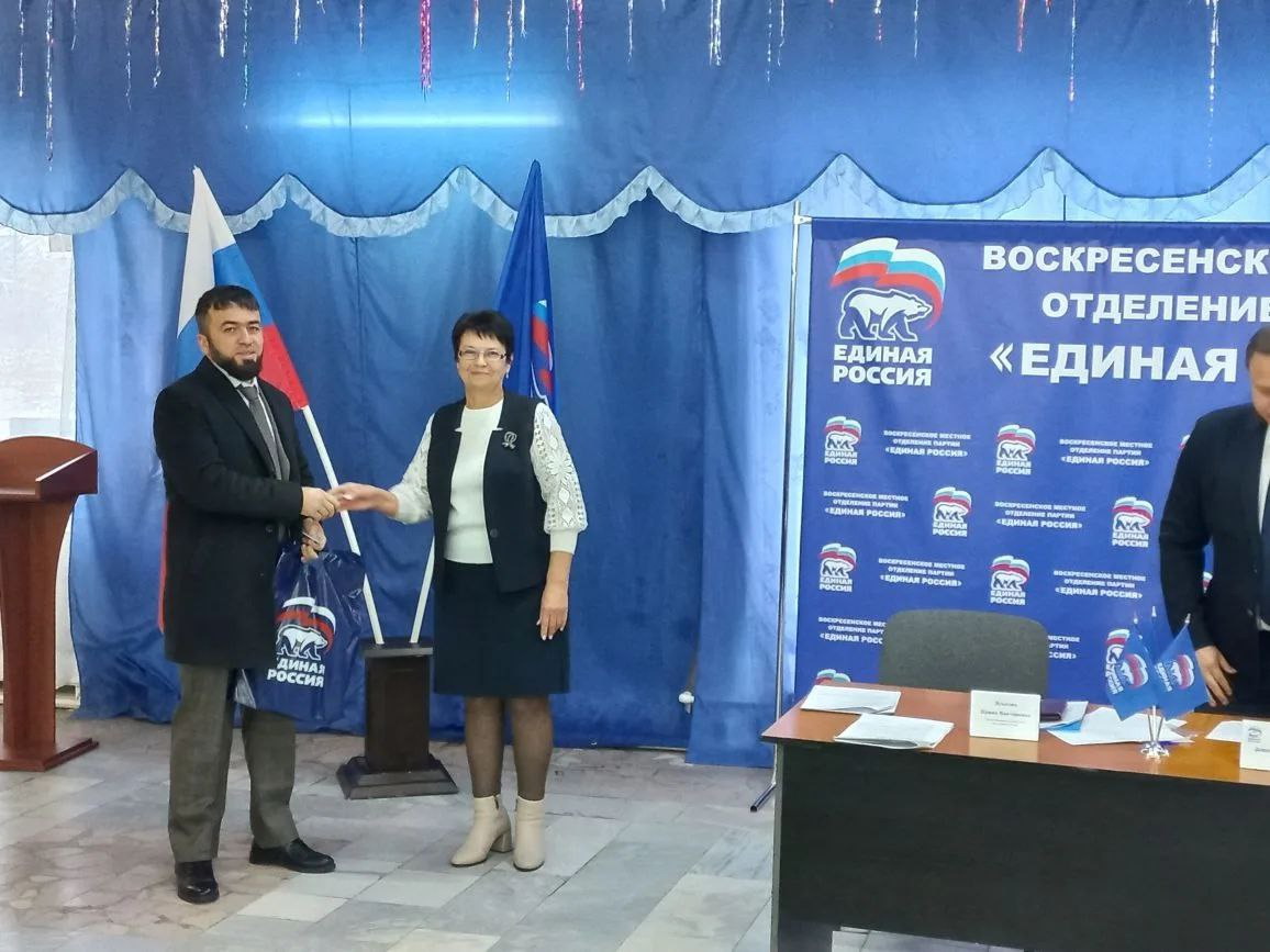 На Конференции торжественно вручили партийные билеты новым членам Партии: И.П. Орловой (с. Славянка), Т.А. Заводской (с. Синодское), В.А. Бирюкову (с. Синодское), И. Ш. Гайтукаеву (с. Студеновка).