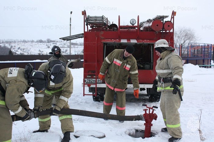 Отрабатывали тушение пожара на 2-м этаже в классе русского языка и литературы образовательного учреждения.