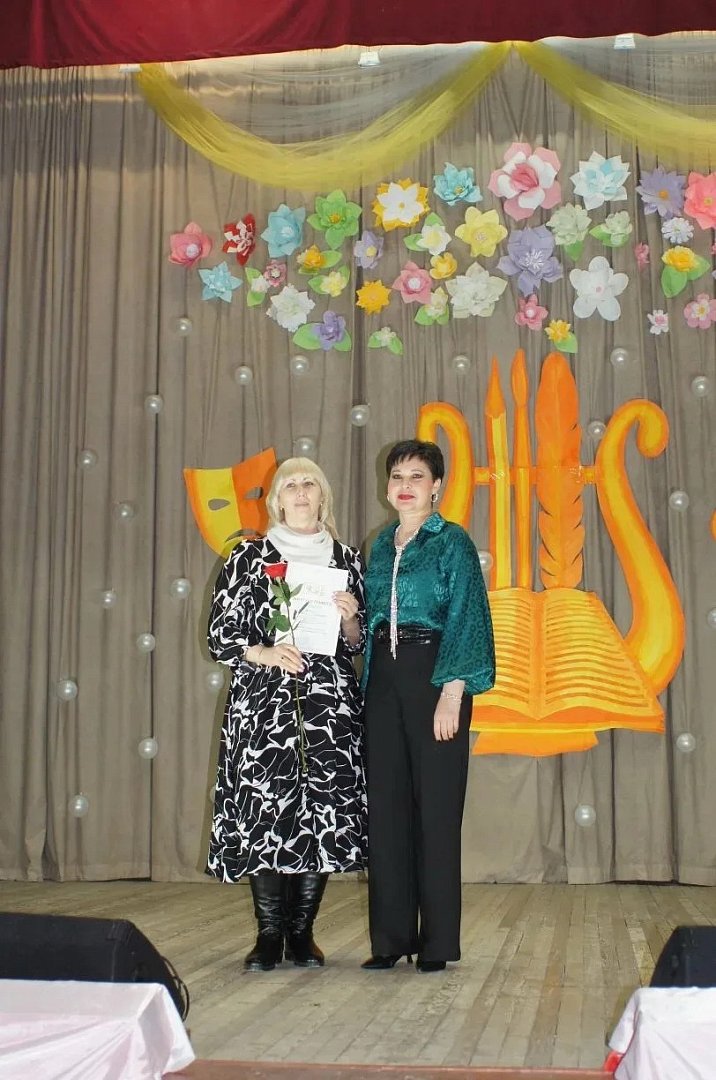 ников торжества пришли почетные гости. В зале присутствовали заместитель главы администрации по социальной сфере Н. Н. Елфимова, начальник управления культуры и кино А. А. Чистякова, начальник управления образования М. А. Филиппов, заместитель главного врача по организационно-методической работе Воскресенской районной больницы М. М. Союнов, главный редактор информационного агентства «Наша жизнь» С. В. Кадышева, председатель Воскресенского отделения Общероссийского Профсоюза работников культуры Л. А. Ульянова.