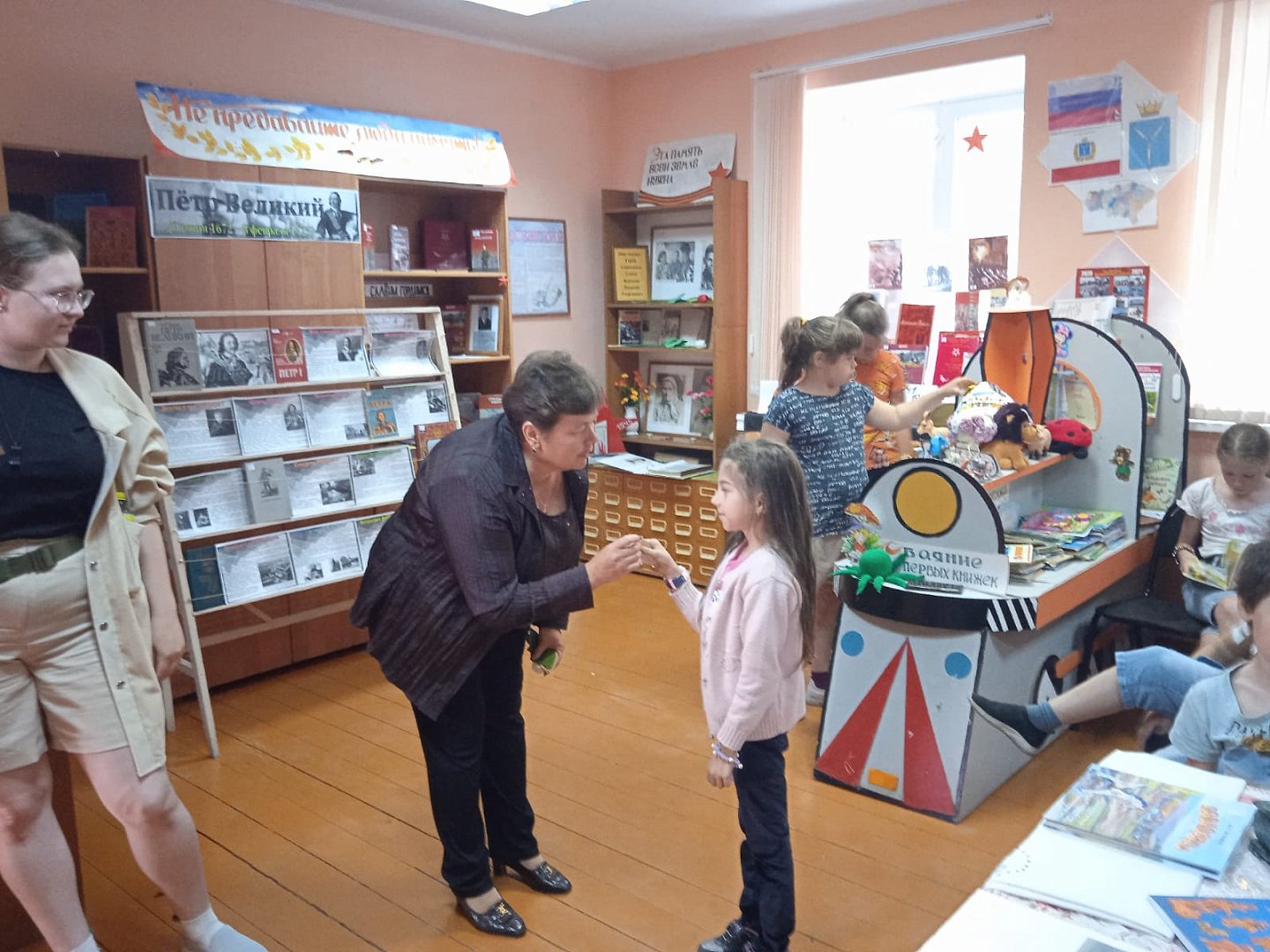 В Синодской сельской библиотеке проходит выставка "Пётр Великий". О нем написано много книг. Документальная и справочная литература поможет узнать о личности и характере Петра I. А для ребят из летнего оздоровительного лагеря " Солнышко " был проведён исторический час "Великий Пётр, личность и реформы". По окончании которого все приняли участие в акции Моя Россия. Все присутствующие украшали ветвь своими листьями, с пожеланиями в адрес нашей будущей России. В свою очередь ребятам хочется пожелать прилежной учёбы, ведь своими знаниями и трудом вы будете укреплять мощь нашего государства, так как вы-будущее России.