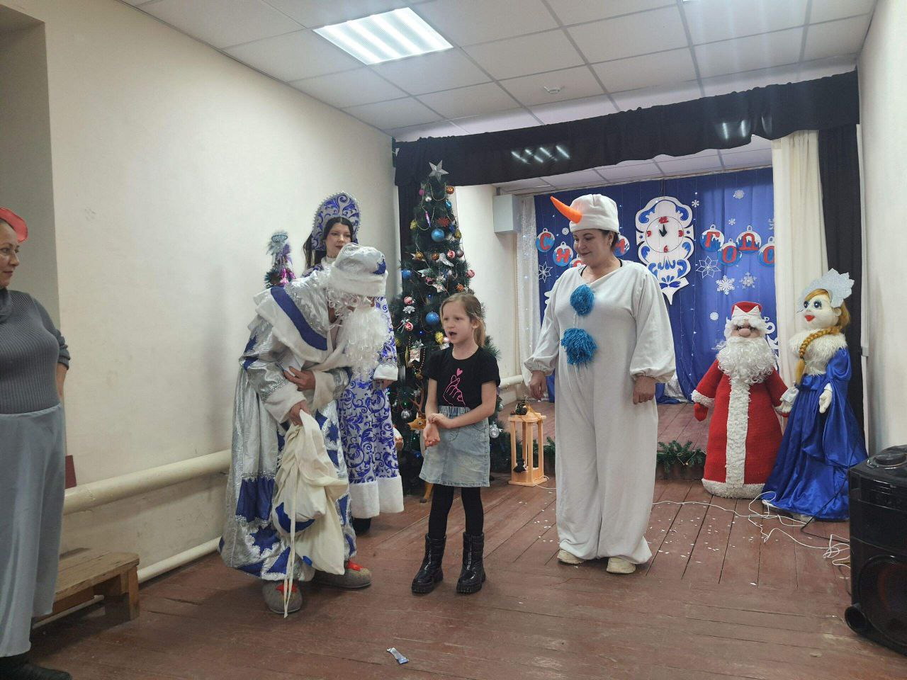 Дети Деду Морозу рассказывали новогодние стишки и получали сладкие призы. Праздник завершился радостным вручением подарков. Мамы и бабушки не могли сдержать улыбки, наблюдая за счастливыми лицами своих детей. Дед Мороз и Снегурочка попрощались с гостями, пообещав вернуться в следующем году.