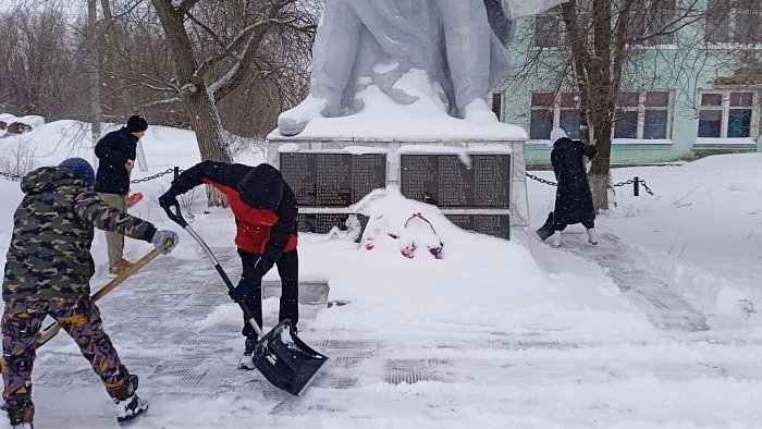 Школьники сёл Новая Алексеевка и Булгаковка также расчищали от снега памятники погибшим воинам-землякам