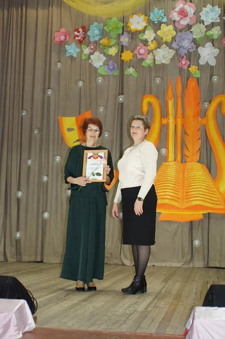ников торжества пришли почетные гости. В зале присутствовали заместитель главы администрации по социальной сфере Н. Н. Елфимова, начальник управления культуры и кино А. А. Чистякова, начальник управления образования М. А. Филиппов, заместитель главного врача по организационно-методической работе Воскресенской районной больницы М. М. Союнов, главный редактор информационного агентства «Наша жизнь» С. В. Кадышева, председатель Воскресенского отделения Общероссийского Профсоюза работников культуры Л. А. Ульянова.